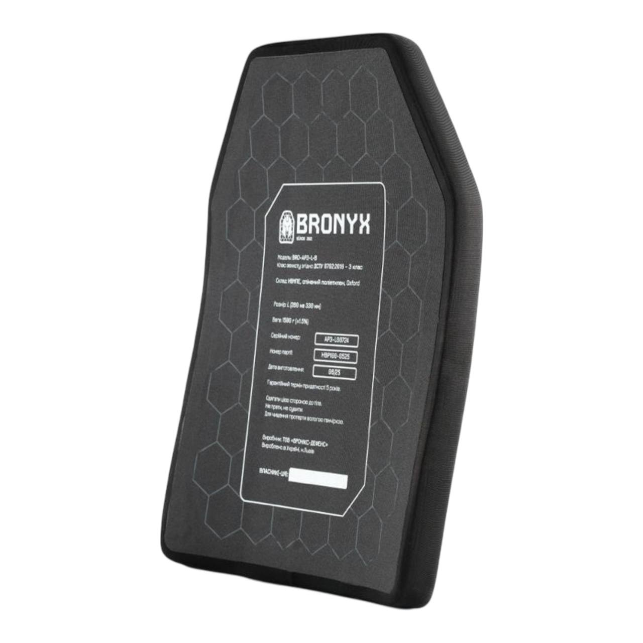 Бронеплита BRONYX 3 класу захисту розмір L, 260×330 мм, 1,56 кг, НВМПЕ