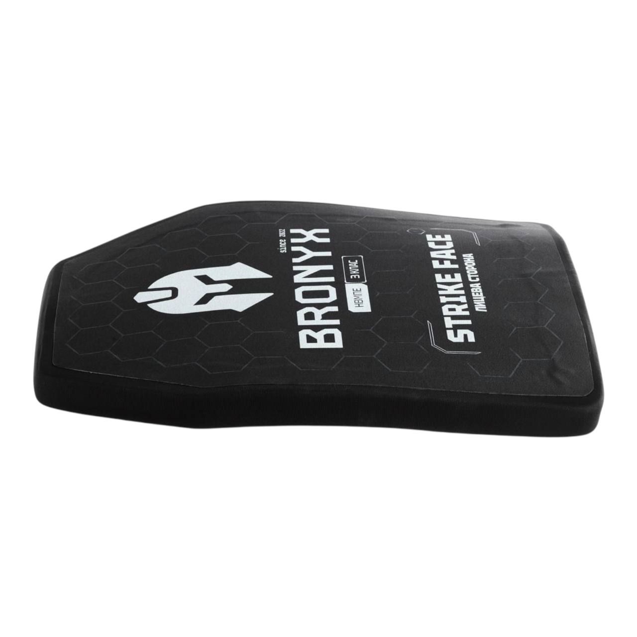 Бронеплита BRONYX 3 класу розмір L, 260×330 мм, 1,56 кг — це сучасний жорсткий бронеелемент українського виробництва, розроблений для використання у складі бронежилетів та плитоносок. Модель належить до 3 класу захисту згідно з ДСТУ 8782:2018 та поєднує надійний балістичний захист, помірну вагу та комфорт при тривалому носінні.