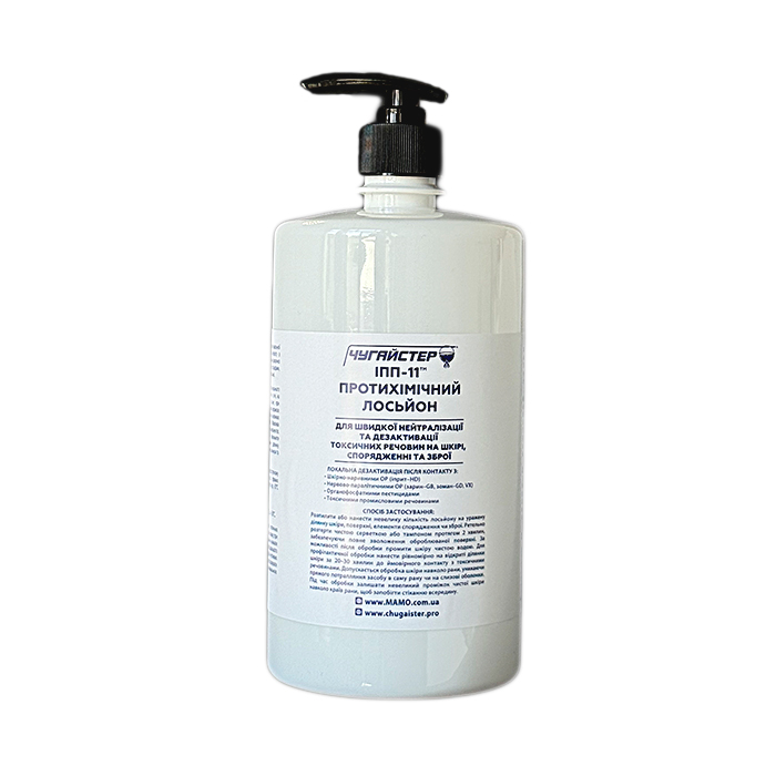 Протихімічний лосьйон ІПП-11 ЧУГАЙСТЕР™ (1000 мл) швидко нейтралізує бойові ОР, пестициди та токсичні промислові речовини на шкірі, спорядженні та зброї.