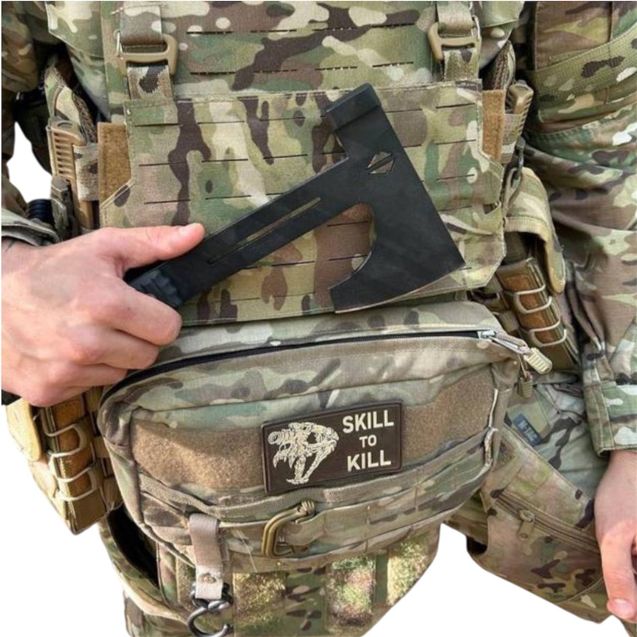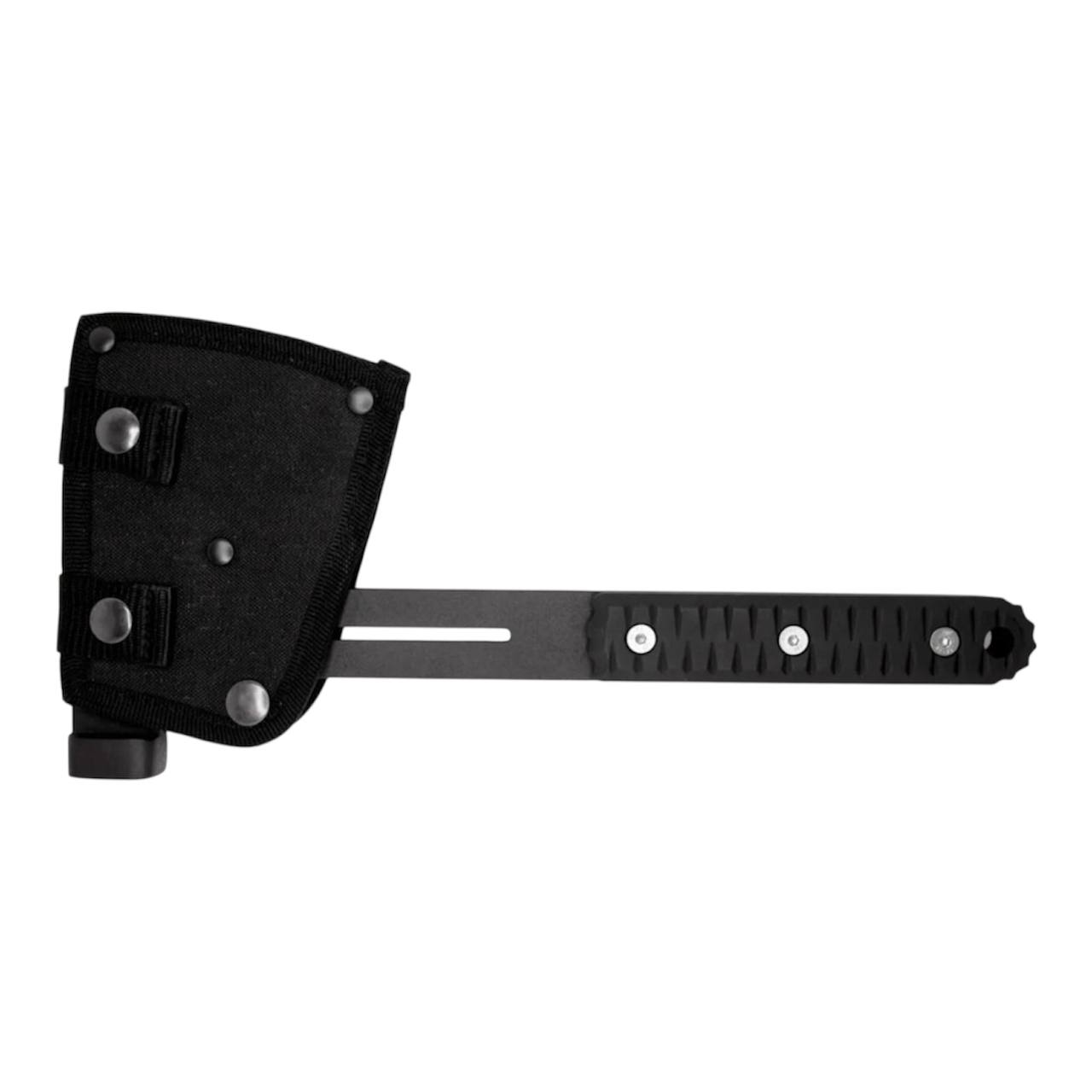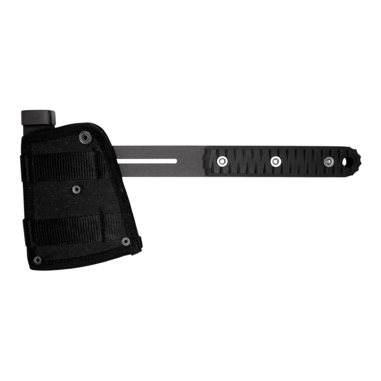 Чохол оснащений системою MOLLE, що дозволяє закріпити сокиру на рюкзаку, ремені або тактичному спорядженні.